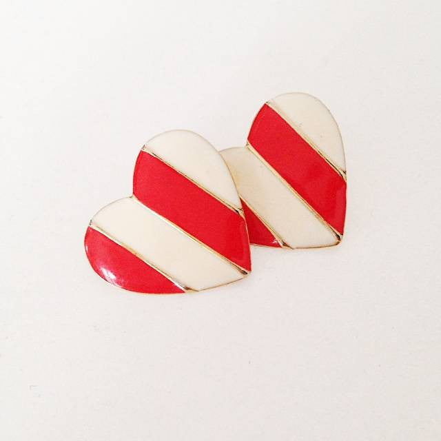 I LOVE these! Red and white striped heart shape earrings - fun big and bold.