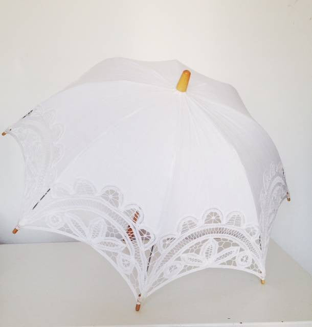 Perfect for a stroll in the sunshine along the river bank this pretty cotton and lace parasol will keep you looking cool on a hot day.
