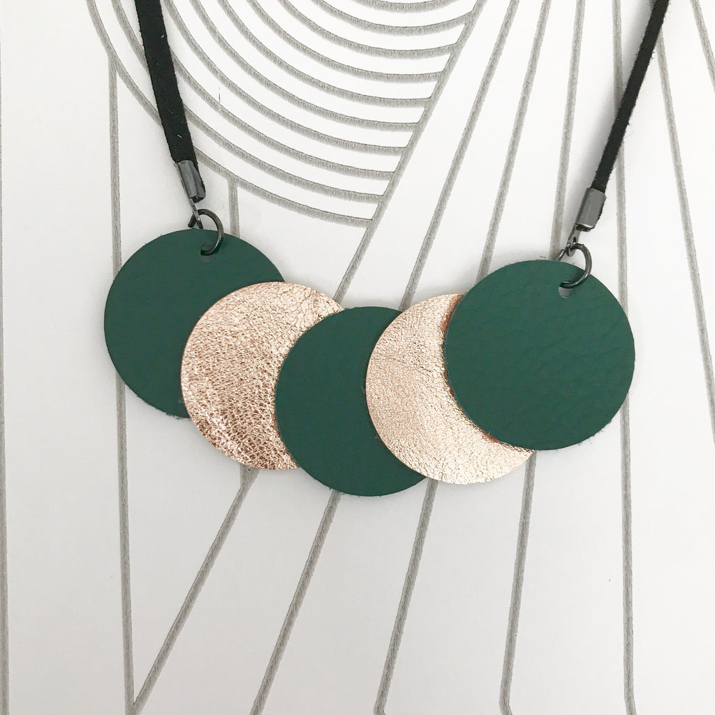 Green and Gold Contemporary Leather Circle Necklace SOLD OUT