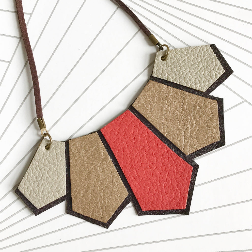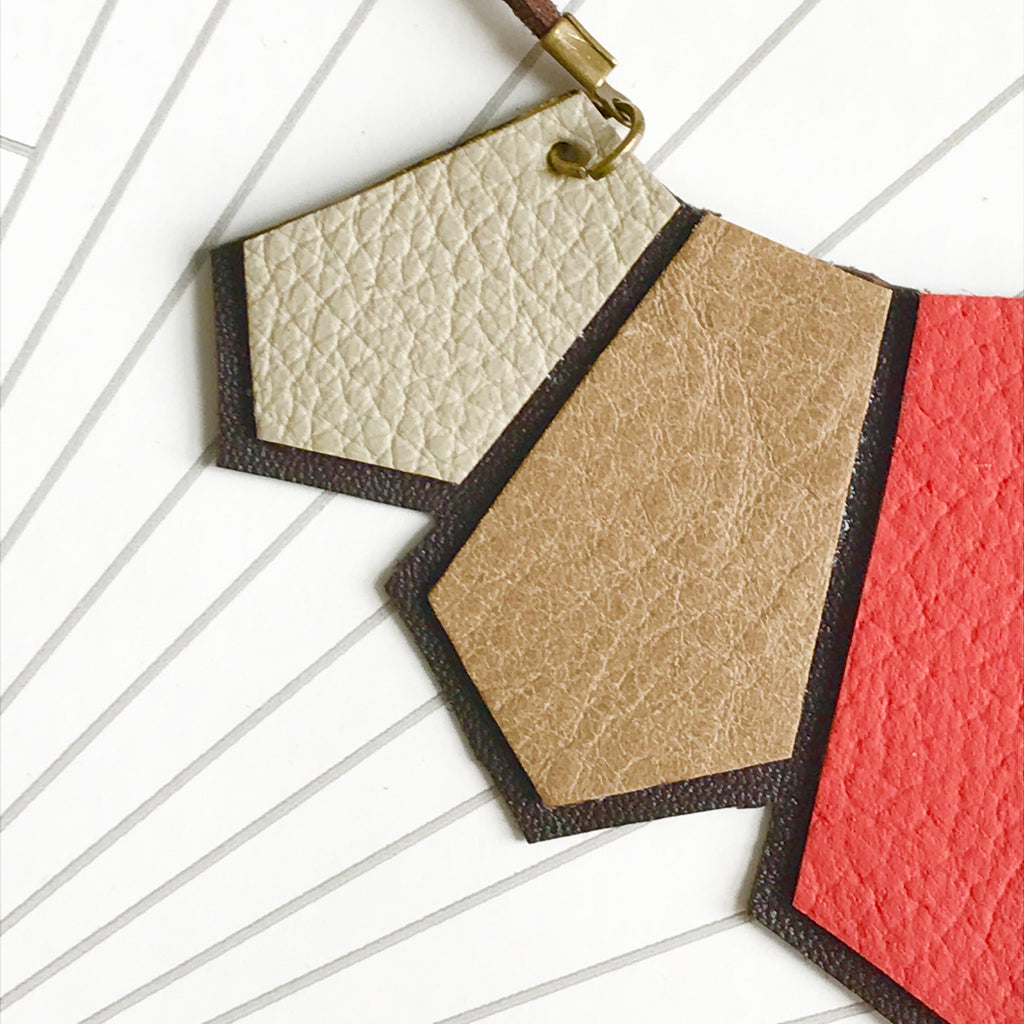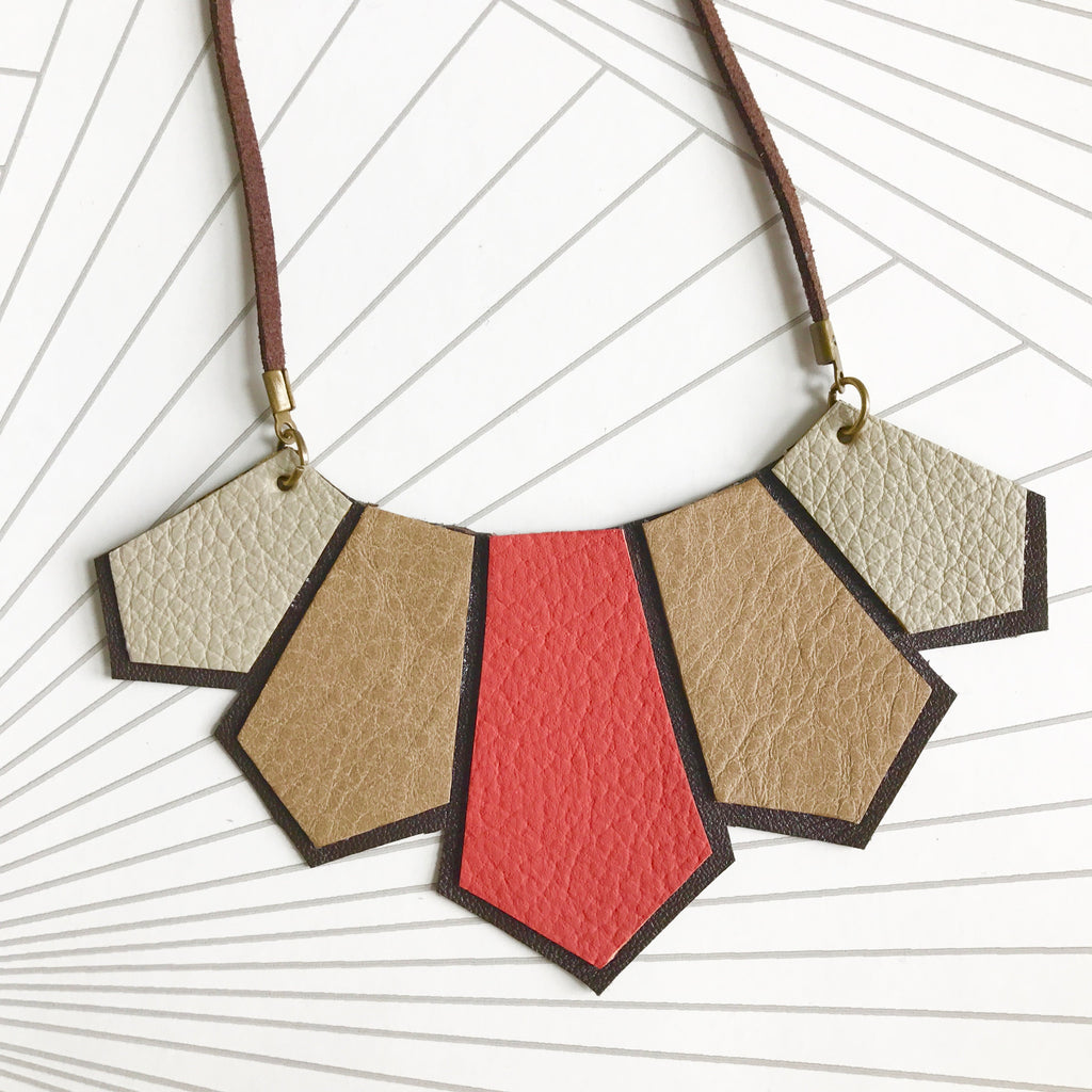 Orange and Brown Leather Geometric Necklace