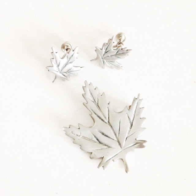 A lovely 1940s silver colour leaf brooch with matching earrings. Simple and stylish. I can barely part with this one.