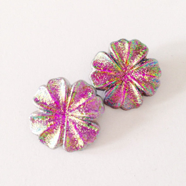 These are totally amazing! Lovely clip-on flower earrings shining in shades of green and pink. Just sparkly and gorgeous.