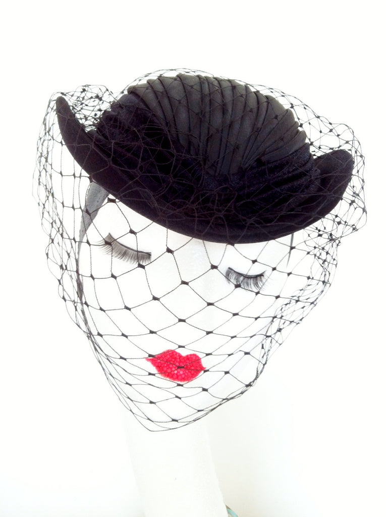 There's just something I love about this beautiful chic and sophisticated hat. It perches so neatly on the head and is fitted with elastic so it sits securely. It has a lovely big bow at the back and the black veiling just finishes it off perfectly.