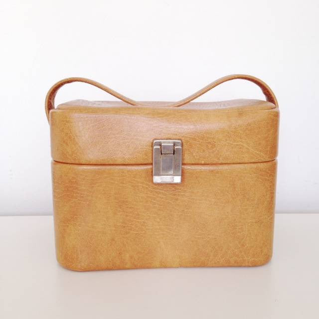 A very lovely dinky tan coloured vanity case. Perfect to pop in your lippy and rouge on an evening away. so cute!