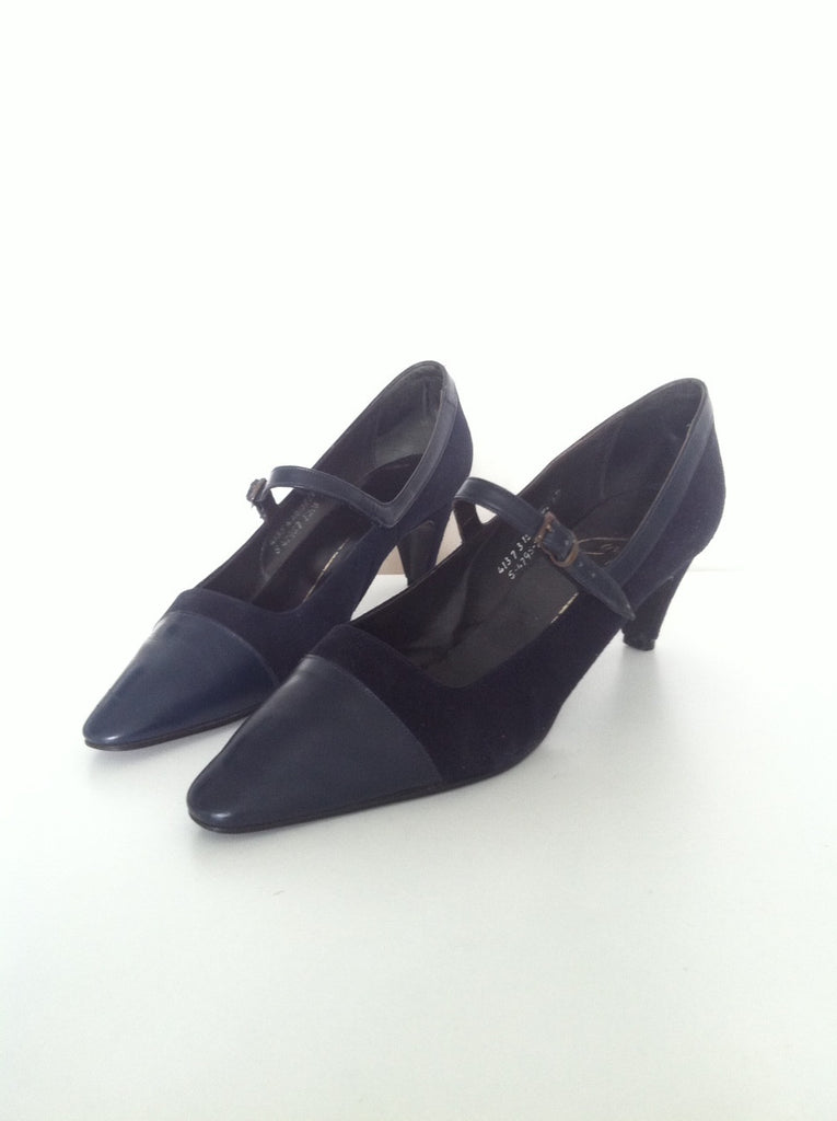 Now I do love a pair of Mary Janes and these Navy blue ones are no exception. 1920s style with leather toe and blue suede upper perfect with a little drop waist dress.