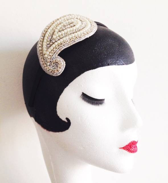 Set with pearls and sparkling rhinestones this 1920s style headband catches the light in a really lovely way. Just glamorous and gorgeous but really easy to wear.