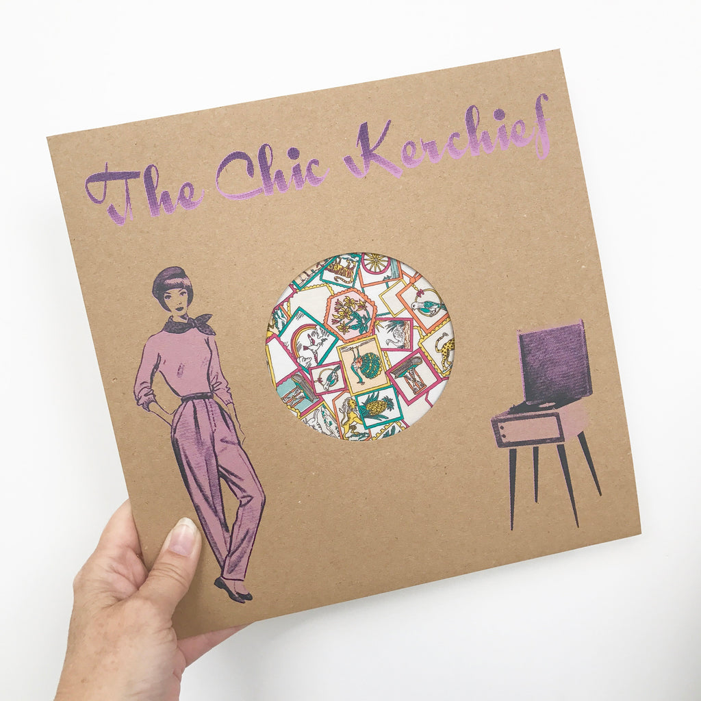 It can be worn as a neckerchief or headscarf and comes packaged in a 10" record sleeve, a stylish and unique gift.